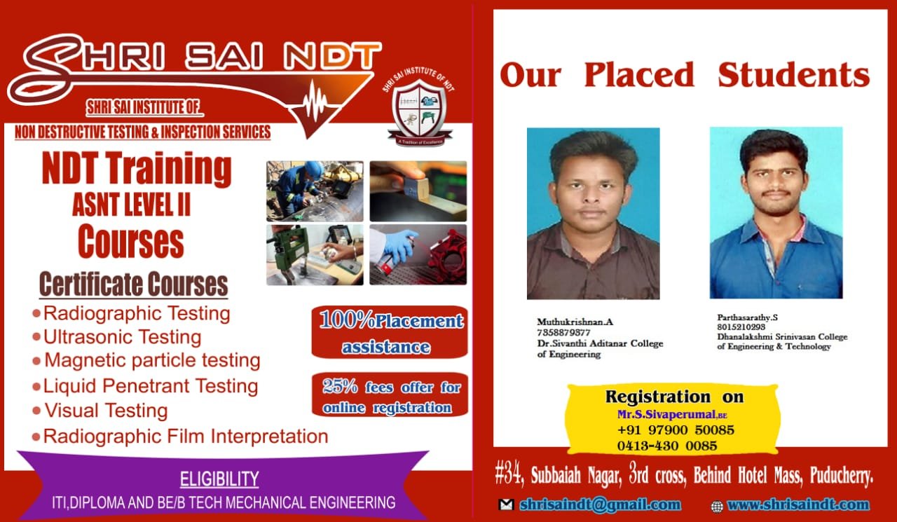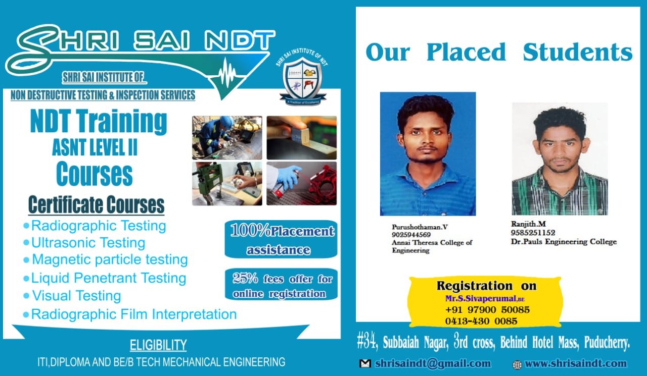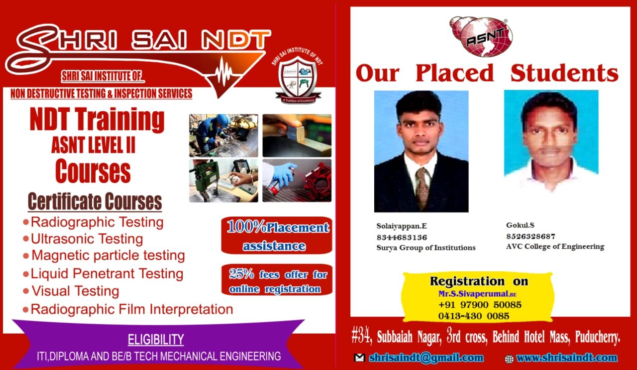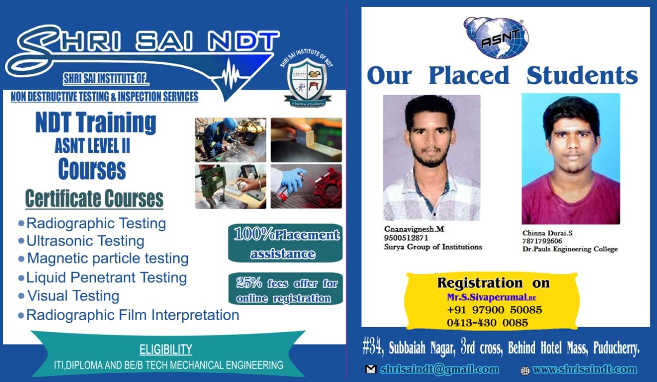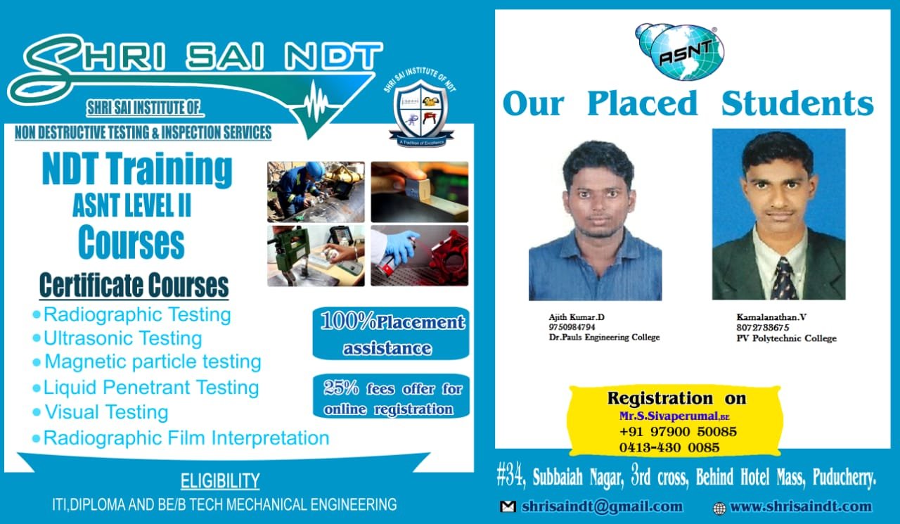 ShriSai NDT Institute moulds its trainees to become world class NDT operators, welding inspectors, painting inspectors and technicians. As an institution, is to provide “Futuristic Technical Education” to all our students.