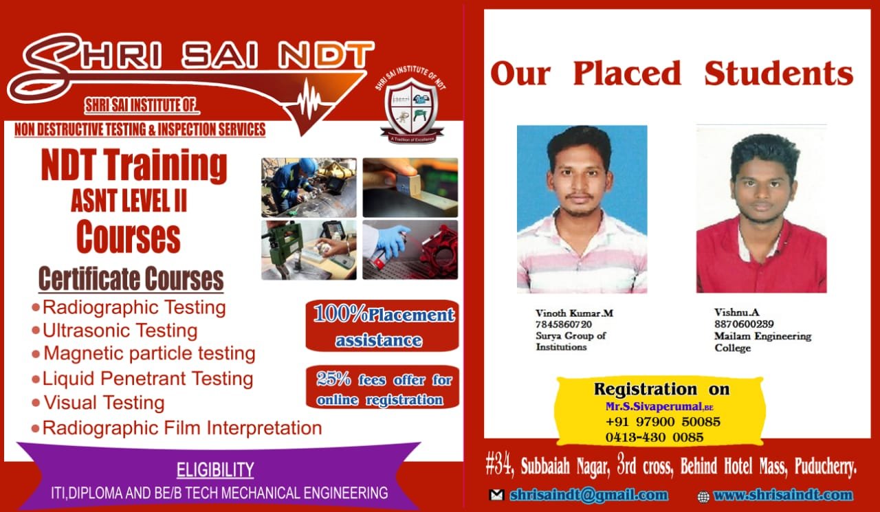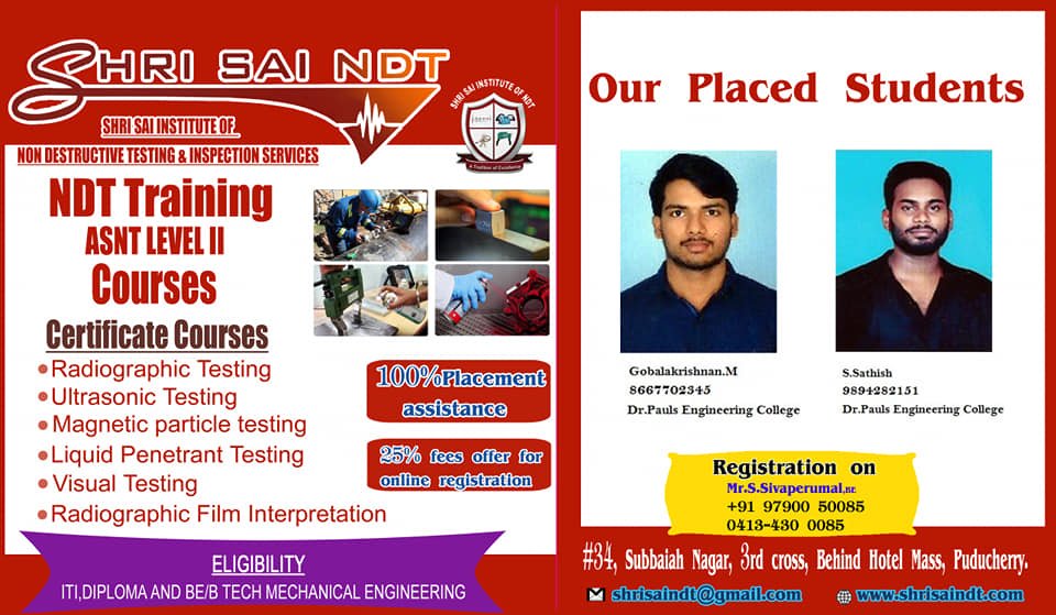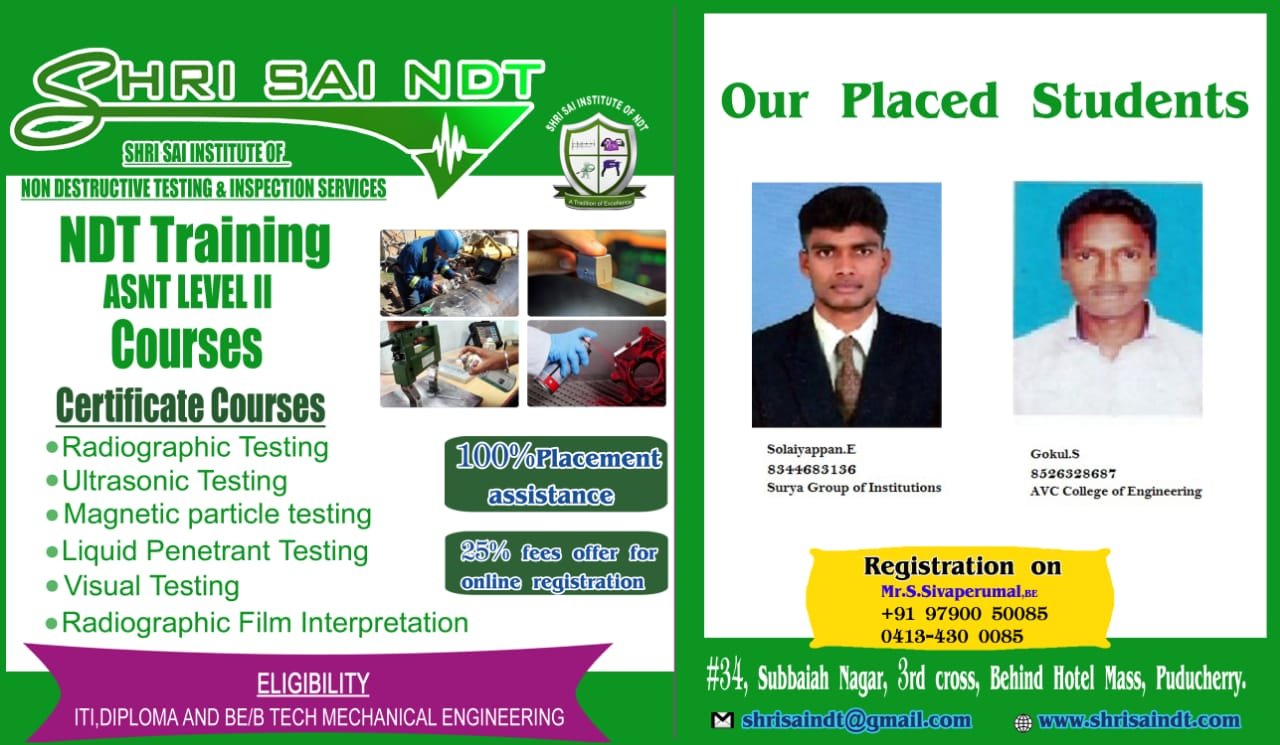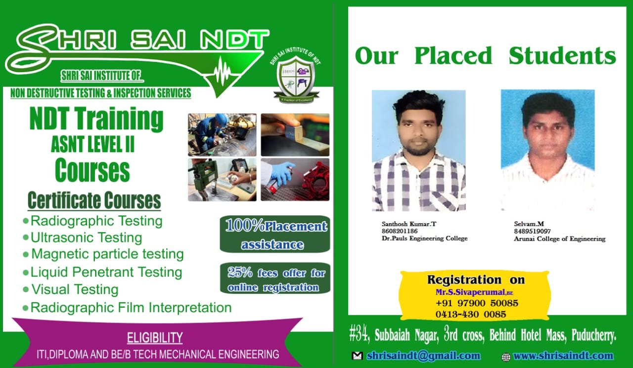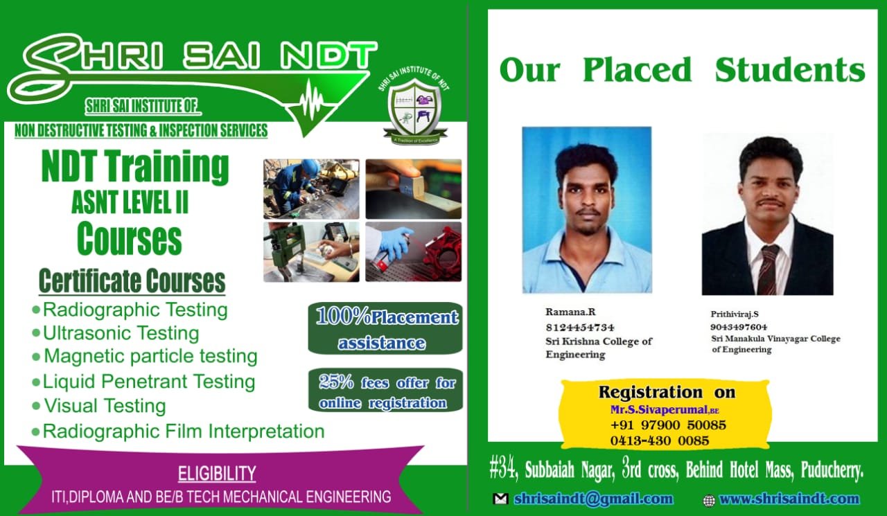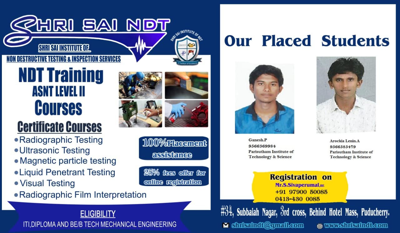 ShriSai NDT Institute moulds its trainees to become world class NDT operators, welding inspectors, painting inspectors and technicians. As an institution, is to provide “Futuristic Technical Education” to all our students.